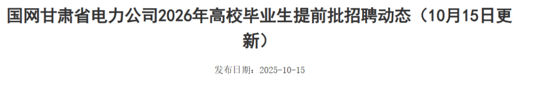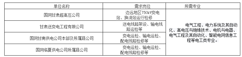 甘肃国度电网2026高校结业生提前批聘请专业次要有:电气工程、电力系统及其从动化、高电压取绝缘手艺、电机取电器!电气工程及其从动化、智能电网消息工程等电工类专业。