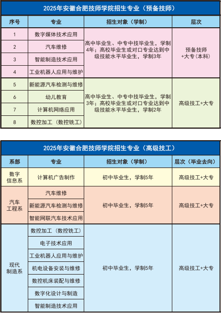 安徽合肥技师学院开办于 1982 年,是安徽省人平易近核准设立的全日制公办技师院校,坐落于合肥市新坐高新区职教城,占地 497。75 亩、建建面积 26。83 万平方米,正在校生约 7000 人。汽车工程、现代办事、数字消息手艺四大系部,聚焦新能源汽车、智能制制、工业机械人等抢手范畴开设专业,校内实训设备一流,校园漂亮,是学技术、练本事的抱负之地。