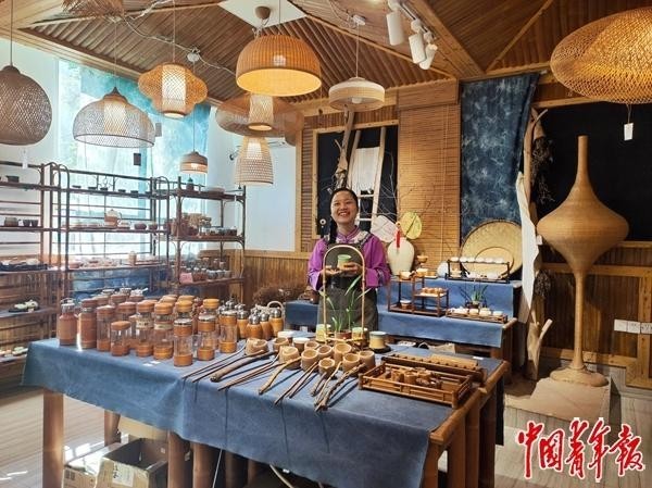 2025年4月18日,贵州省赤水市,做为第十三届、十四届全国代表,她多次带着赤水竹编去。中青报·中青网记者 蒋肖斌/摄。